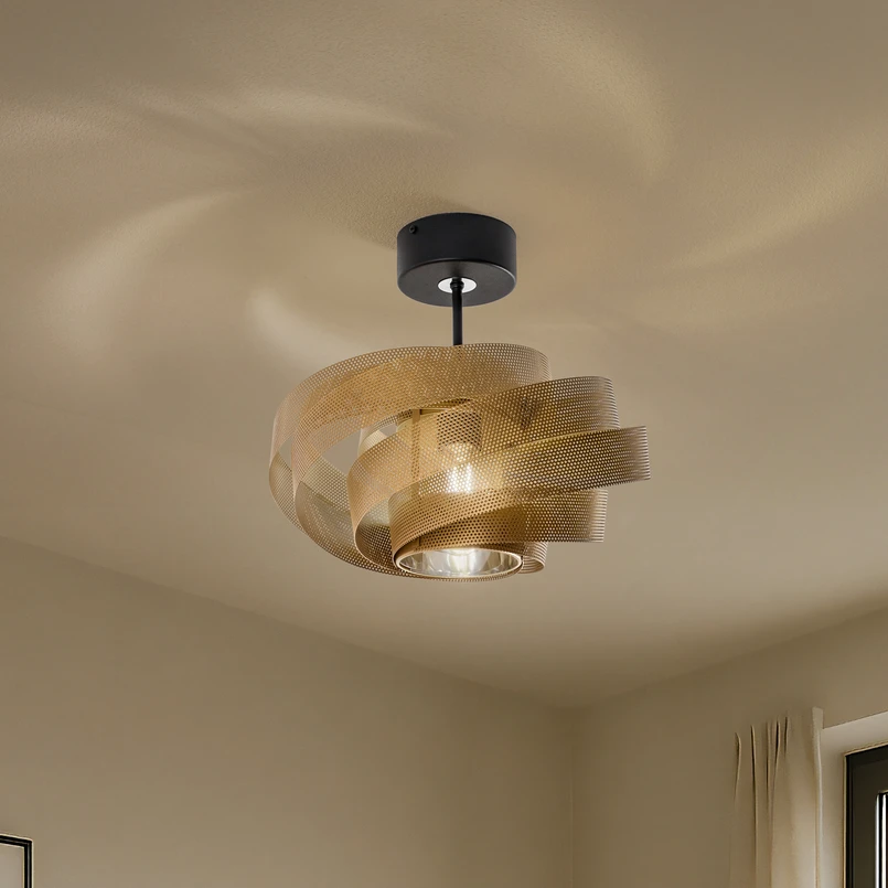 Le plafonnier Vento séduit par son design moderne et l'association harmonieuse du métal noir et doré. Ce luminaire élégant n'est pas seulement un accroche-regard, il est également polyvalent. Que ce soit dans le salon, la salle à manger, le couloir, la cuisine ou la salle de bains, le Vento s'intègre parfaitement dans différents concepts d'aménagement et confère à chaque pièce une atmosphère particulière.