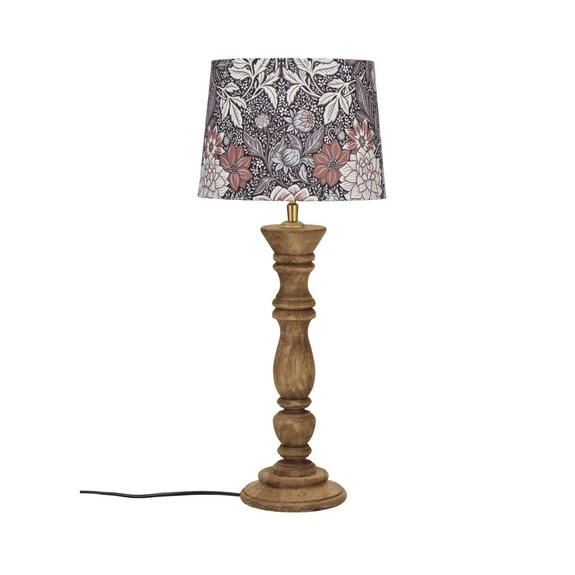 Lampe de table naturelle et chaleureuse avec base en bois Lodge et abat-jour Sofia en motif dahlia marron Cette lampe de table se présente comme un agréable diffuseur de lumière d'appoint. Le socle Lodge en bois de manguier est associé à l'abat-jour Sofia. Ce dernier est en textile, fabriqué à partir de polyester recyclé. Le motif marron représente des fleurs de dahlia. Le socle Lodge est équipé d'une douille E27.