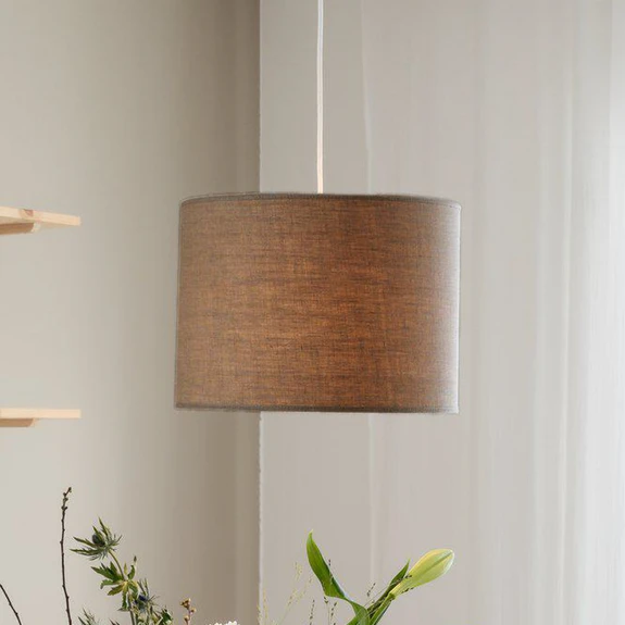 Suspension cylindrique Sara en textile de lin La suspension à 1 lampe Sara se combine de multiples façons et convainc en tant que diffuseur de lumière discret et confortable pour le salon ou la chambre à coucher. L'abat-jour cylindrique est en textile de lin. Il est également doté d'une suspension blanche avec douille E27.