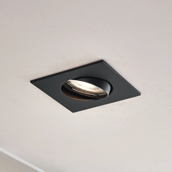 Le plafonnier encastré noir Fibur, de forme angulaire, incarne la symbiose entre un design moderne et une élégance fonctionnelle. Ce luminaire haut de gamme s'intègre parfaitement dans l'espace de vie et permet d'éclairer de manière ciblée certaines zones ou certains objets, car il est orientable. Elle utilise une ampoule GU10 de Ø 5 cm. Si celle-ci est à intensité variable, la luminosité peut être réglée à l'aide d'un variateur d'intensité externe.