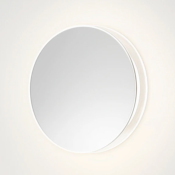 Forme minimaliste et lumière douce sont les mots-clés qui décrivent le mieux l'applique murale LED LYD. Minimaliste, car lorsqu'on la regarde éteinte, elle ressemble à un simple disque rond accroché au mur. Ce disque rond est en fait un miroir, ce qui lui confère une utilité pratique, notamment dans le couloir ou la chambre à coucher. Mais le luminaire se passe de toute ostentation et de gadgets inutiles. Mais c'est lorsque l'on allume la lumière que LYD révèle toute sa grandeur. Une lumière douce et diffuse se diffuse autour du disque et se propage sur le mur, créant presque une aura de lumière. La lumière n'étant pas diffusée directement dans la pièce, elle ne risque pas d'éblouir les passants ou les personnes qui regardent la lampe.