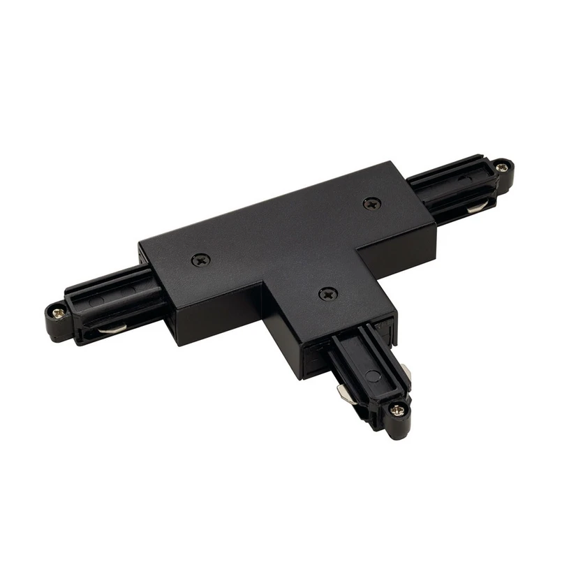 Connecteur en T noir pour rail monophasé SLV Ce connecteur en T permet de réunir plusieurs rails du système de rail monophasé SLV. On obtient ainsi beaucoup plus de flexibilité et on peut contourner les coins avec élégance. Le connecteur est en plastique et dispose d'une possibilité d'alimentation - terre à droite - 16A max