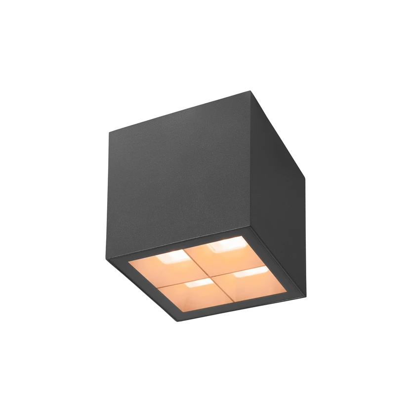 Plafonnier LED S-Cube avec couleur de lumière réglable (CCT) Le nouveau plafonnier d'extérieur LED S-Cube séduit avant tout par son design moderne et élégant. De plus, avec sa couleur de lumière réglable via CCT-Switch dans la plage de la couleur de lumière blanc chaud, sa protection IP65, sa gradation et sa longue durée de vie, il offre également tout ce qui caractérise un luminaire d'extérieur de qualité. Le couvercle LED légèrement satiné, qui produit une lumière propre et homogène et laisse entrevoir les réflecteurs blancs, est un véritable point fort.