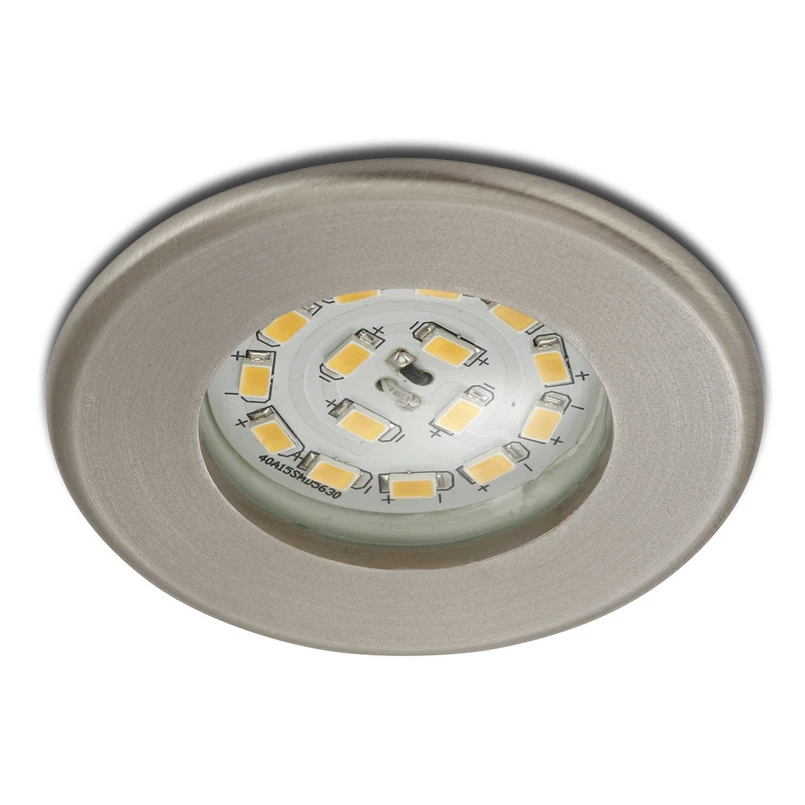Spot encastré LED Nikas - convient également pour la salle de bains grâce à son indice de protection IP44Ce petit spot encastré convainc par sa technique d'éclairage LED ultramoderne et peut être utilisé de manière universelle grâce à sa couleur intemporelle. L'anneau extérieur est en plastique robuste. Ainsi, le luminaire est absolument inoxydable. Nikas est doté du type de protection IP44 et est parfaitement protégé contre les projections d'eau et les impuretés, de sorte que le projecteur peut également être utilisé dans la salle de bain.Un module LED de 5 watts est intégré à l'intérieur. Il offre une lumière blanc chaud avec un flux lumineux de 400 lumens. Ce spot encastré permet de créer un éclairage général à faible consommation d'énergie, en particulier lorsqu'il est utilisé à plusieurs.Pour rendre le luminaire encastré plus confortable, un diffuseur blanc est disponible en accessoire (1015297).Les avantages en un coup d'œil:- inoxydable- faible dégagement de chaleur- faible profondeur d'encastrement- extensible à volonté- adapté à l'extérieur et à la salle de bain grâce au type de protection IP44- pilote LED intégré