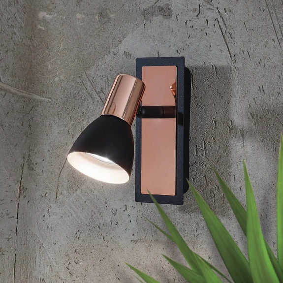 Spot mural LED Barnham, largeur 7 cm, noir/cuivre