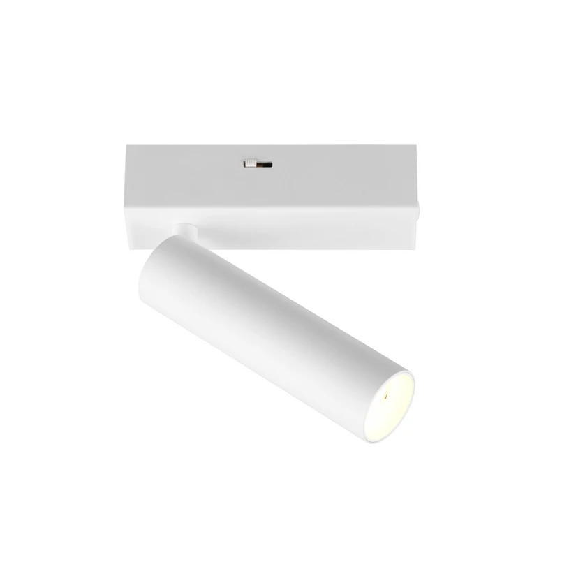 Spot pour plafond LED Ambala, 1 lampe, également pour montage mural Au plafond comme au mur, le spot LED Ambala à une lampe, avec un baldaquin rectangulaire et un spot cylindrique, peut assurer un éclairage flexible. Un interrupteur sur la rosace permet de régler la couleur de lumière. On peut choisir entre un éclairage blanc chaud de 2 300 K ou 3 000 K et un éclairage blanc neutre de 4 000 K. En outre, l'intensité de la lumière peut être variée, et ce sans l'installation d'un variateur d'intensité externe, via l'interrupteur d'éclairage existant. En appuyant plusieurs fois sur cette touche, la lumière peut être commutée sur trois niveaux de luminosité (100 %, 50 %, 25 %, éteint).