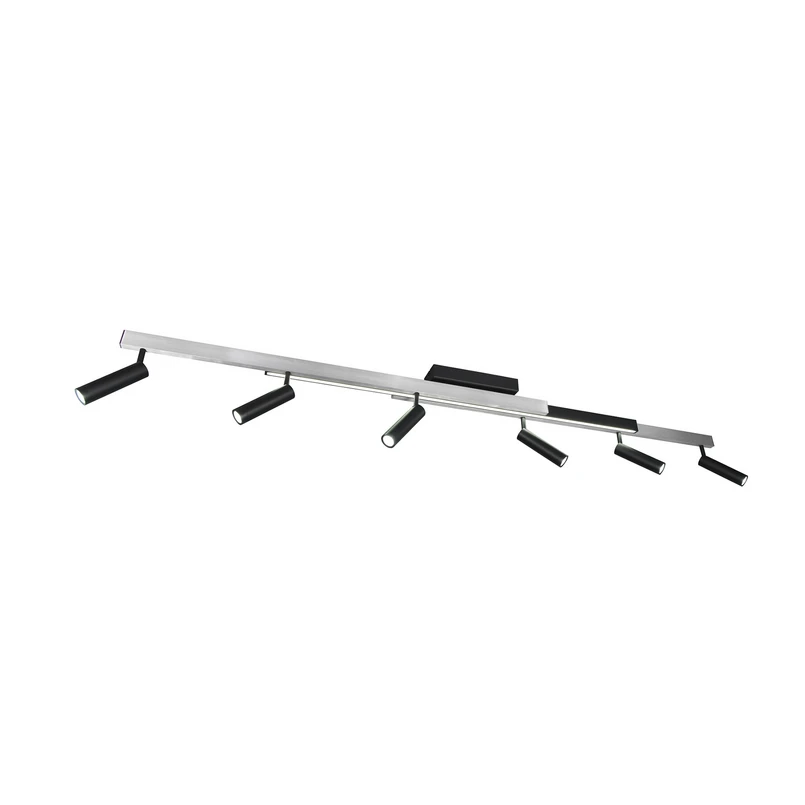 Spot pour plafond LED Zeno, 6 spots, aluminium brossé/noir, métal