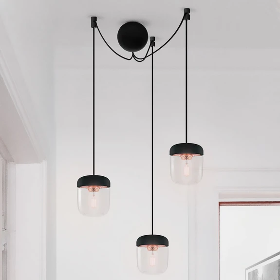 Suspension noire Acorn avec cœur en cuivre brillant, à 3 lampes