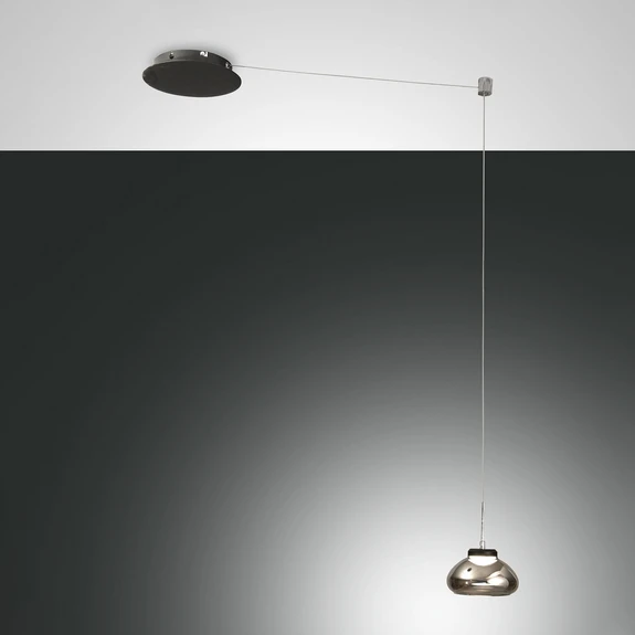 Luminaire suspendu à LED Arabella avec abat-jour en verre gris transparent et suspension décentralisée