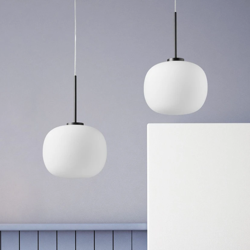 Suspension à 2 lampes Bombo en verre blanc avec suspension décentrée La suspension Bombo de l'architecte et designer italien Davide Negri est un diffuseur de lumière stylé, adaptable et agréable pour les espaces de vie et de détente. Deux abat-jour presque sphériques en verre blanc laiteux assurent une diffusion douce de la lumière de tous les côtés. La hauteur de suspension et la position des abat-jour peuvent être déterminées lors du montage, en plaçant les points de fixation décentralisés aux endroits souhaités au plafond.