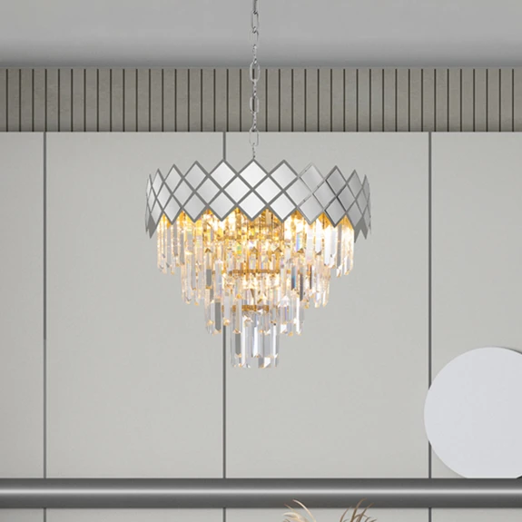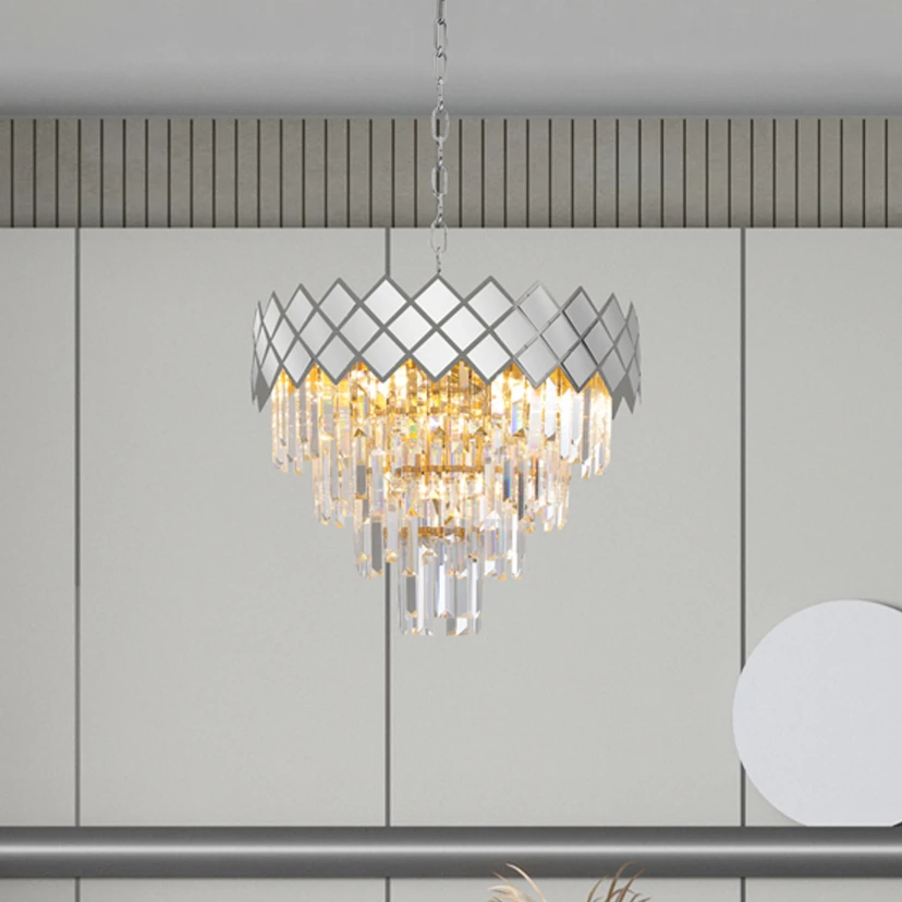 Suspension Carisma métal chromé cristaux de verre, Ø 50 cm