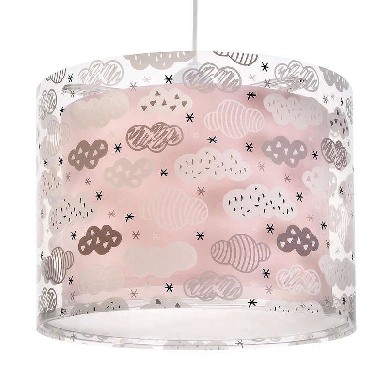 Magnifique suspension Clouds en rose La suspension rose Clouds permet d'apporter une touche élégante et ludique dans chaque chambre d'enfant. La lampe se compose de deux abat-jour superposés : L'abat-jour inférieur est rose clair, celui qui se trouve au-dessus se montre transparent. Ce dernier est suspendu à une certaine distance du modèle uni et est imprimé de nombreux contours de différents nuages et étoiles. Cette combinaison donne un luminaire de rêve qui est particulièrement mis en valeur dans les chambres d'enfants claires et en partie roses. En l'occurrence, la suspension Clouds peut déjà être suspendue dans la chambre de bébé et devenir un fidèle compagnon jusqu'à l'âge scolaire, car elle assure dans la pièce un éclairage généreux et uniforme qui invite au jeu et à la détente. Remarque : l'abat-jour n'est pas prémonté et doit être assemblé avant la mise en service - voir le mode d'emploi. Lien vers la vidéo de montage du fabricant : https://www.youtube.com/watch?v=NMGSQtM-33c&t=4s