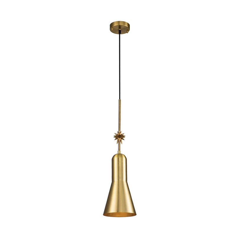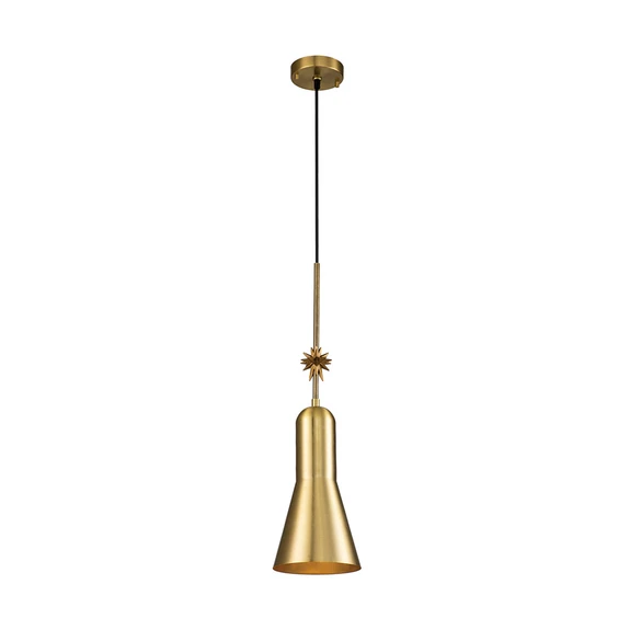 Lampe à suspension Etoile avec décor étoilé en résine synthétique dorée Cette lampe à suspension à une flamme a tout pour plaire. Etoile (en français : étoile) est dotée d'un abat-jour esthétique en métal laqué de couleur. Au-dessus de l'abat-jour, la suspension est ornée d'une étoile. L'étoile est fabriquée en résine synthétique et dorée à la feuille. La suspension Etoile attire le regard, quel que soit l'endroit où elle est utilisée : comme éclairage de table à la maison ou dans un restaurant, ou comme source de lumière pour un éclairage d'ambiance. - gradation externe