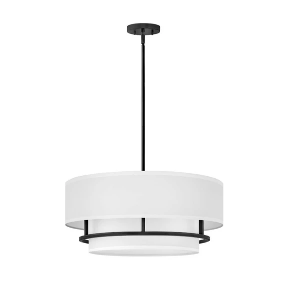 Suspension Graham Duo Mount - montage variable La suspension Graham Duo Mount peut être montée de différentes manières, car elle est livrée avec une suspension variable. Si l'on supprime la longue tige, la suspension se transforme en plafonnier. L'élément marquant de ce luminaire en acier et tissu blanc est la structure en entretoises métalliques qui se trouve entre les deux abat-jour superposés. Un diffuseur dans l'abat-jour intérieur garantit un éclairage sans éblouissement vers le bas.