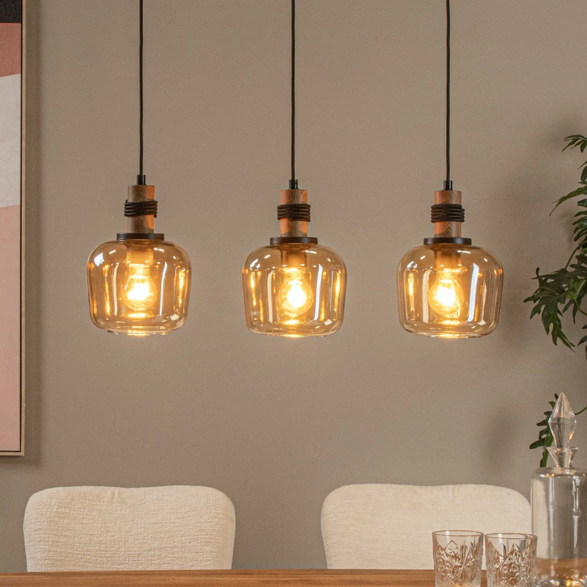Suspension Ilona, verre, noir/ambre, 3 lampes