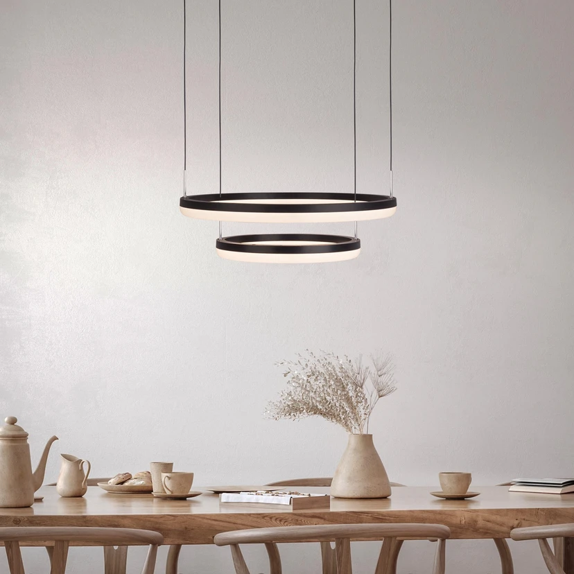 Suspension LED CCT, deux anneaux, télécommande
