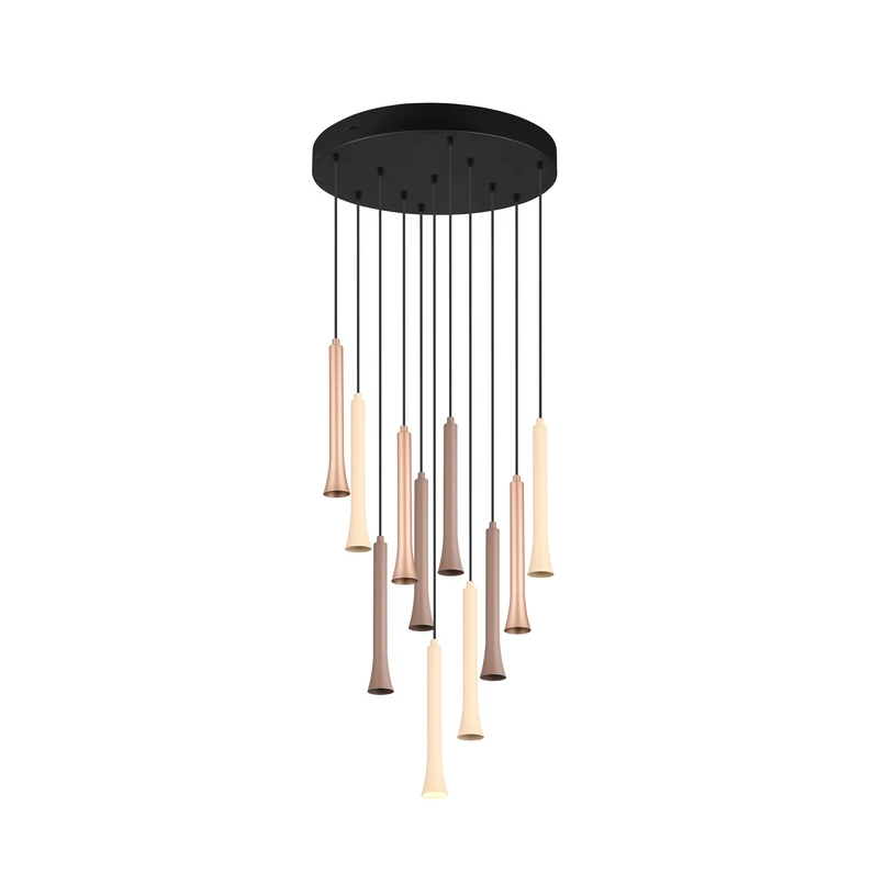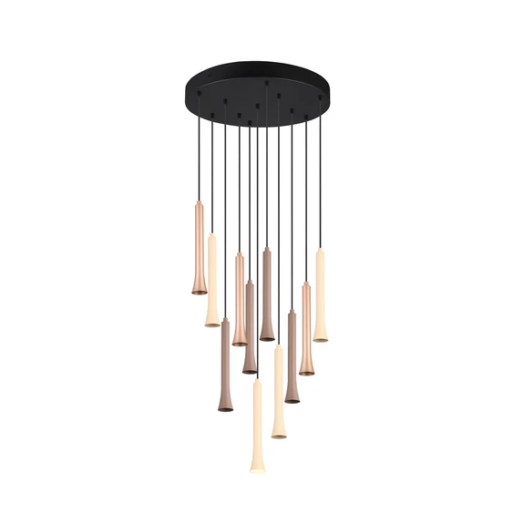 Suspension LED Fiato, 11 lampes, ronde, métal, taupe, coffee