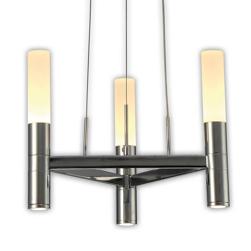 Parfait pour les amateurs de minimalisme : suspension LED à 3 flammes Irina avec variateur de lumièreLa suspension LED minimaliste de la série Irina séduit par son élégance froide et intemporelle qui s'intègre sans problème dans tout concept d'habitat. Grâce à la fonction de gradation, la lumière ambiante peut être adaptée individuellement et convient aussi bien à une ambiance de canapé confortable qu'à un travail concentré. La douille et la suspension sont en chrome brillant, les diffuseurs en acrylique sont satinés blanc pour une lumière agréablement diffusée. La couronne LED est suspendue au plafond par trois câbles stables à une distance pouvant atteindre 150 cm. Sa forme élancée permet de l'installer dans des pièces plus petites et plus étroites sans les écraser visuellement.