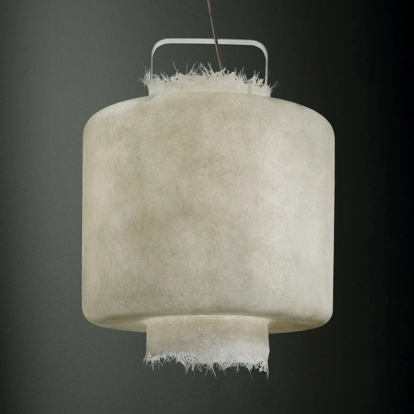Fabriquée en Italie, voici la suspension LED de designer Kimono en forme de lanterne