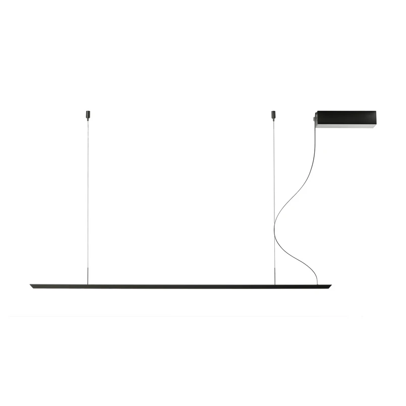 Suspension LED minimaliste Lineal pour un éclairage directLa suspension LED Lineal complète parfaitement les intérieurs modernes avec son design réduit et rectiligne. Deux câbles métalliques fins maintiennent l'abat-jour, qui est composé d'un profilé en aluminium noir. La face inférieure de ce dernier abrite les LED qui émettent une lumière blanc chaud dans un large angle (120°). Une table, par exemple, peut ainsi être éclairée sur une grande surface. Le pilote des LED se trouve dans le baldaquin rectangulaire ; les deux points de fixation des câbles métalliques sont séparés. La série de luminaires Lineal est un concept du designer industriel espagnol Gabriel Teixidó.