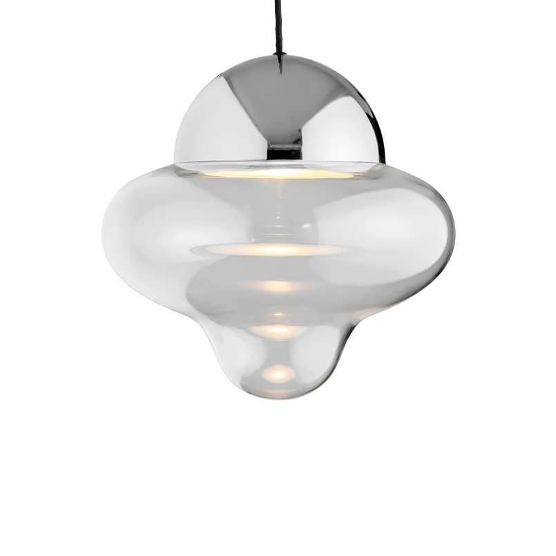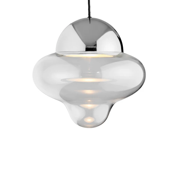 Suspension LED Nutty XL, transparent / chrome, Ø 30 cm, verre