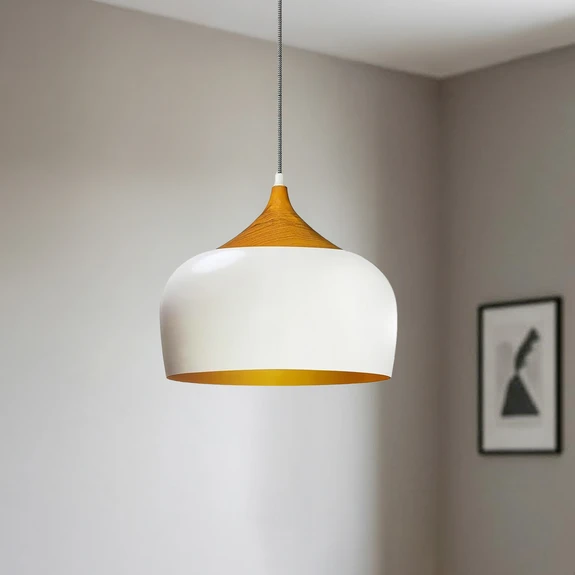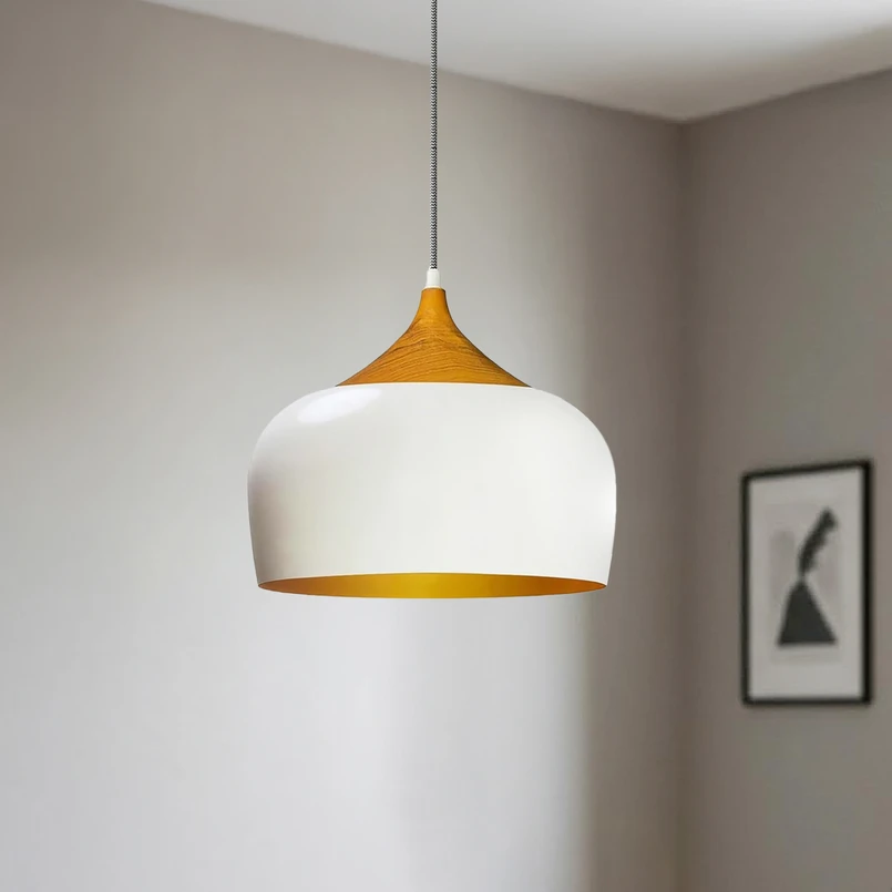 Suspension Qwen, blanc/or, métal, Ø 30 cm