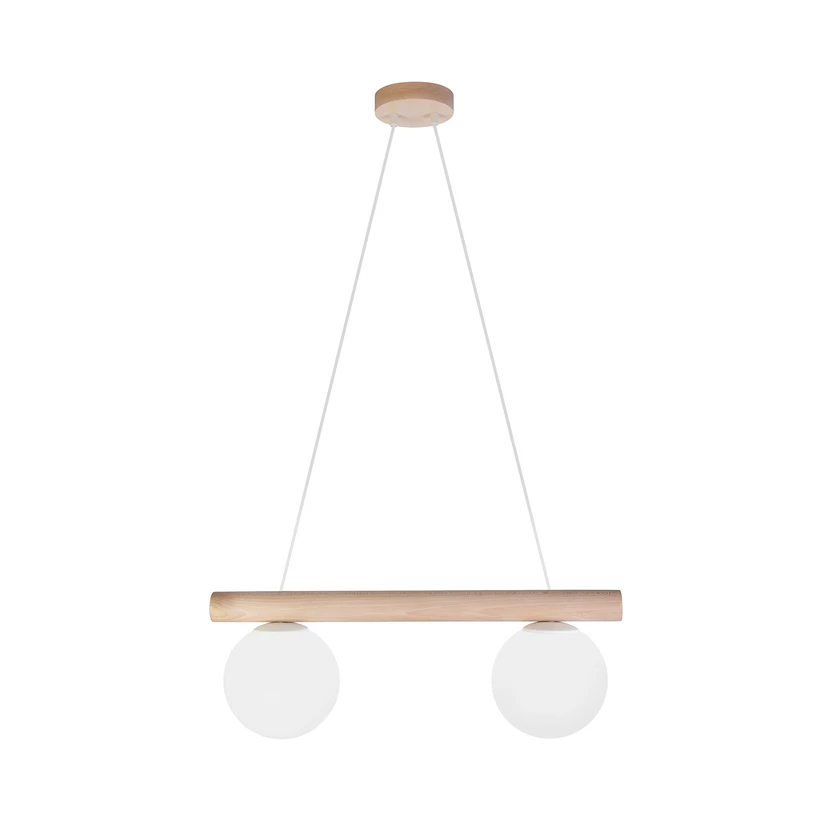 Suspension Woodstock, couleur sable, bois/métal, à 2 lampes