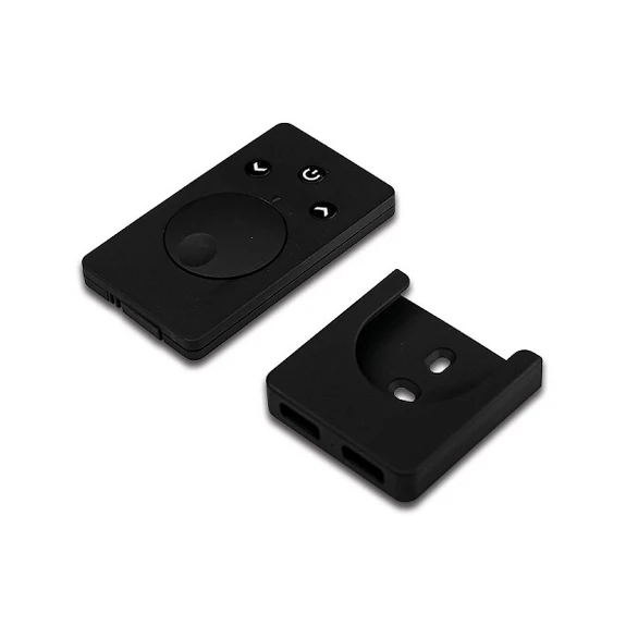 Télécommande radio pour contrôleur Dynamic - avec support mural apparent Cette télécommande radio sert à la commutation, à la variation et au réglage de la couleur de lumière. Pour cela, il faut un contrôleur Dynamic (non inclus) qui est raccordé aux luminaires compatibles par une fiche 24 V DC Dynamic. Pile CR2032 et fixation murale à visser ou à coller incluses.