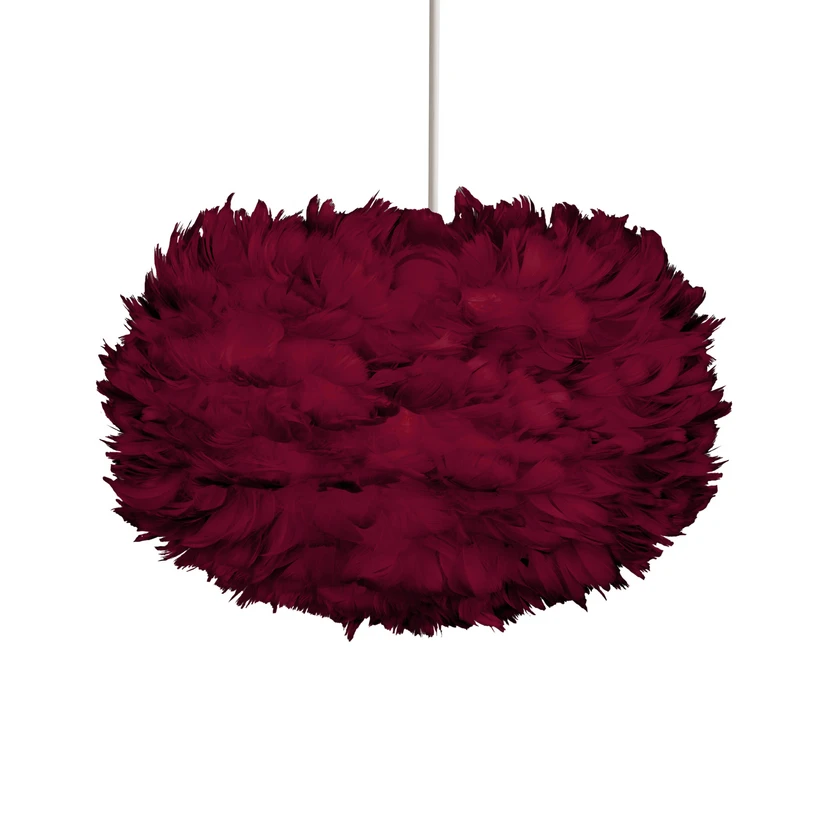 De véritables plumes d'oie constituent la base de la lampe à suspension Eos medium. L'abat-jour de la lampe Eos semble doux et confortable, même sans aucune lumière. Ceci est assuré par les plumes, qui rayonnent de légèreté et sont fixées sur un support en papier. Il est important ici qu'aucune plume d'animal vivant ne soit utilisée dans la production.
