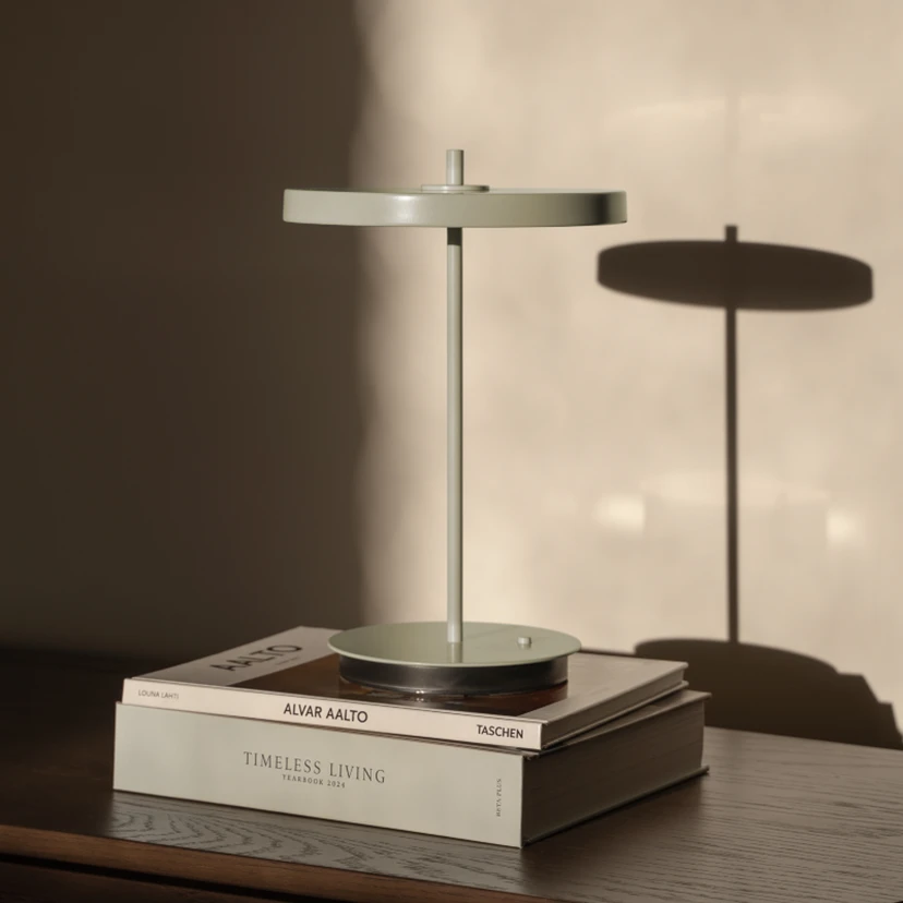 Lampe à table LED Asteria Move avec accu pour une fonction portable Gracieuse et dotée d'une incroyable liberté de mouvement, la lampe à table LED Asteria Move de la maison de design danoise UMAGE peut être utilisée partout dans la maison. Grâce à la batterie lithium-ion intégrée, la lampe peut fournir de la lumière jusqu'à 35 heures en moyenne sans raccordement électrique. Un câble USB-C permet de recharger la batterie. L'abat-jour rond abrite des LED blanc chaud qui émettent une lumière confortable et confortable, répartie sans éblouissement, en douceur et de manière uniforme de tous les côtés grâce au diffuseur intégré. Grâce au variateur d'intensité à bouton-poussoir situé sur le pied, également rond et massif, il est possible de faire varier la lumière sur quatre niveaux d'intensité différents en actionnant plusieurs fois l'interrupteur. La collection Asteria a été conçue par le cofondateur et Chief Creative Developer, Søren Ravn Christensen. Le designer est un autodidacte qui possède le don rare de combiner design et économie. Il dit lui-même de sa collection : "La collection Asteria, créée à l'intersection du design, de la technologie et de l'artisanat, dispose de luminaires LED intégrés dans une forme élancée et minimaliste". Avec l'actuel PDG, Jacob Nannestad Hansen, Christensen a fondé en 2008 la société UMAGE by VITA copenhagen. Les fabricants de lampes de designer accordent une importance particulière aux matériaux durables et à la technologie de haute qualité dans la production de leurs lampes, afin de pouvoir offrir au client le plus grand bénéfice possible. Ce concept est un succès. En effet, l'entreprise danoise de luminaires est aujourd'hui représentée par plus de 1 500 filiales dans plus de 50 pays du monde. - portable - rechargeable - luminosité réglable sur quatre niveaux : 1er niveau 5 lumens env. 168 heures 2ème niveau 20 lumens env. 50 heures 3ème niveau 50 lumens env. 20 heures 4ème niveau 100 lumens env. 10 heures
