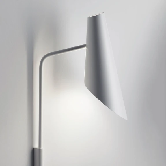 L'applique murale I.Cono 0725 est décorative et fonctionnelle L'abat-jour en plastique de l'applique murale I.Cono 0725 rappelle un entonnoir asymétrique. Grâce à cette forme, la lumière est dirigée vers le bas selon un large angle et convient donc parfaitement pour éclairer un coin de canapé ou à côté du lit. L'abat-jour est fixé à une fine tige en acier qui peut être réglée en hauteur à l'aide d'une vis. L'incidence de la lumière est également réglable, car l'abat-jour dispose d'un mécanisme permettant d'adapter l'orientation. Les créateurs de I.Cono sont les designers Alberto Lievore, Jeanette Altherr et Manel Molina, qui ont conçu le luminaire pour le fabricant de marque Vibia. Dans leurs travaux, ils s'efforcent de créer des formes pures et des lignes claires, ce qui est aussi clairement visible dans I.Cono.