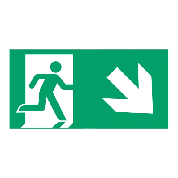 Panneau indicateur "voie de secours descendante à droite" type E pour le luminaire de secours L-LUX Standard Eco